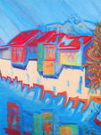 2005huisjes zoals ze in het zuiden van Spanje tegen een stadmuur aanleunen met frisse kleuren